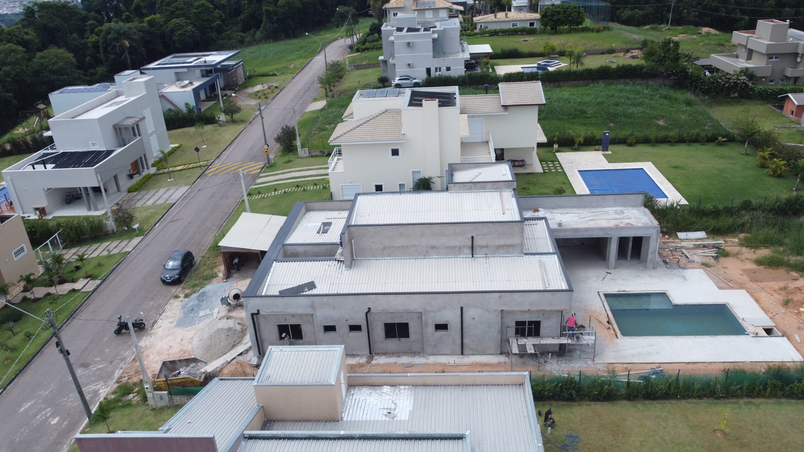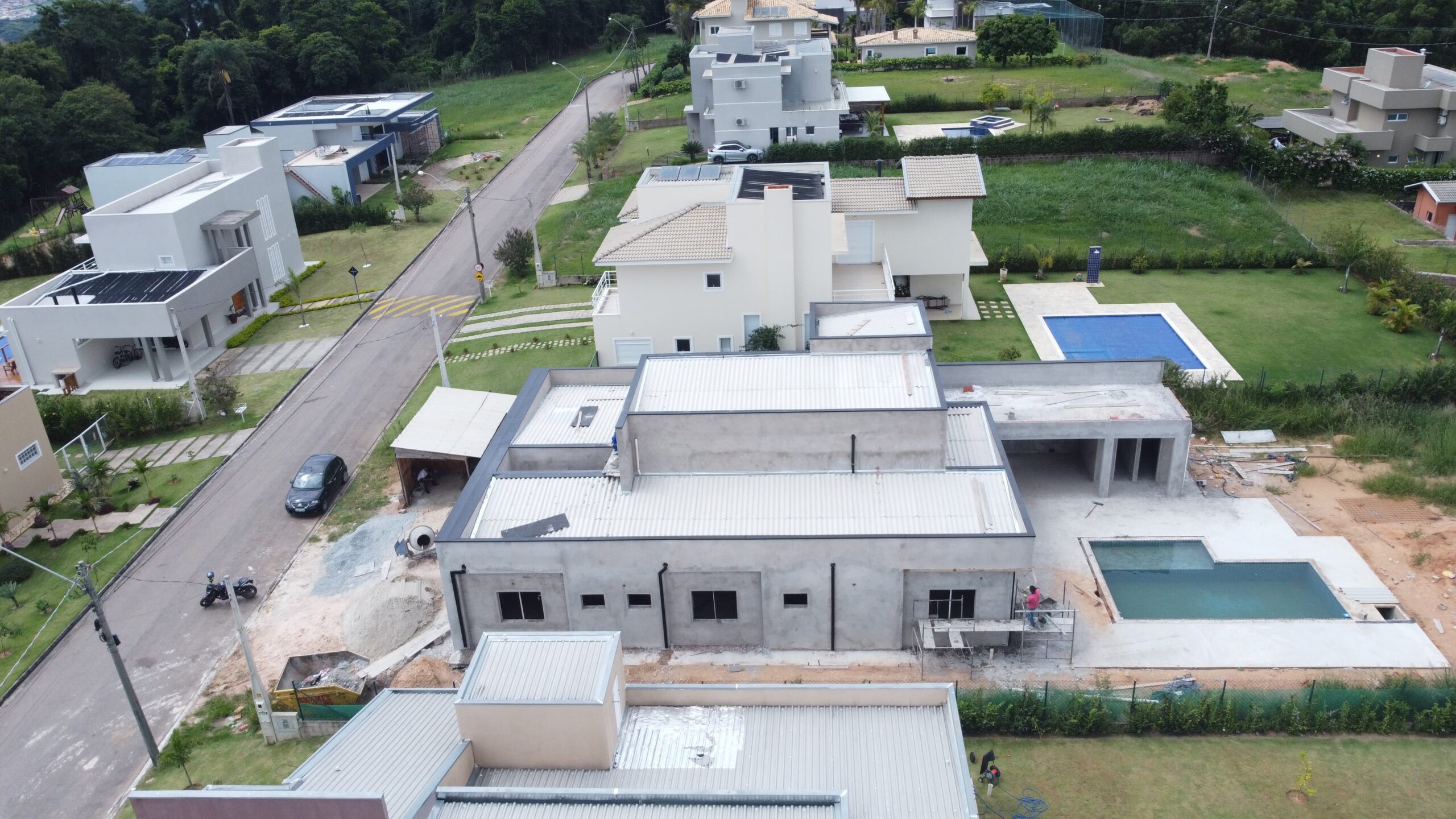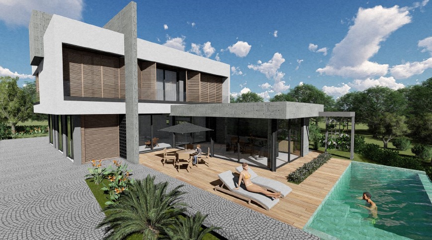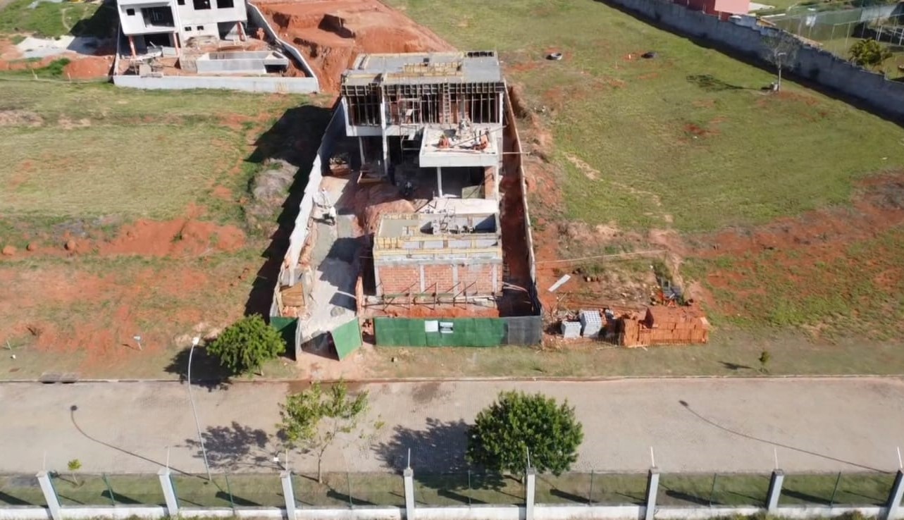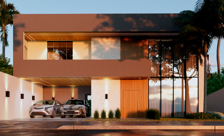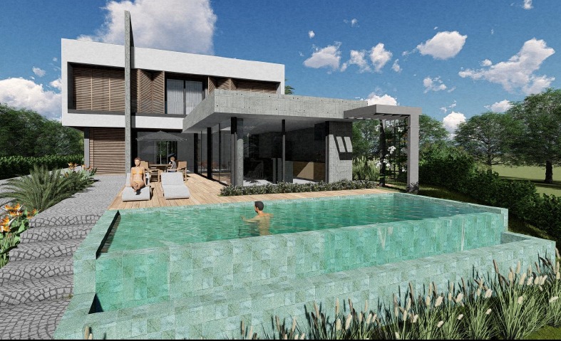 Residência contemporânea com mais de 400 m² em execução. Espaços amplos e piscina com borda infinita em destaque. Projeto com linhas modernas e foco em acabamento premium.