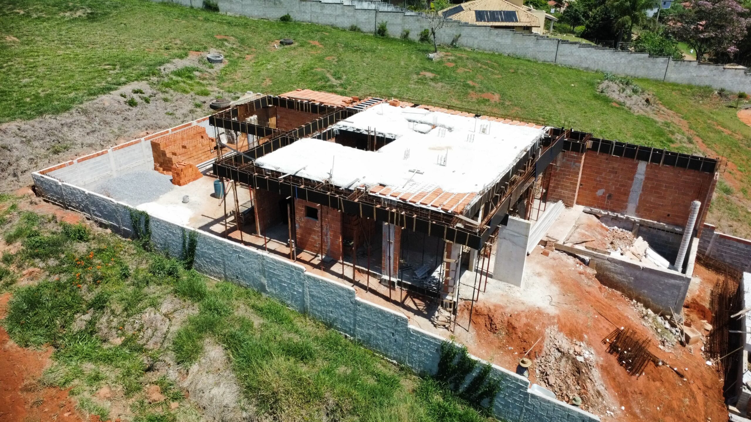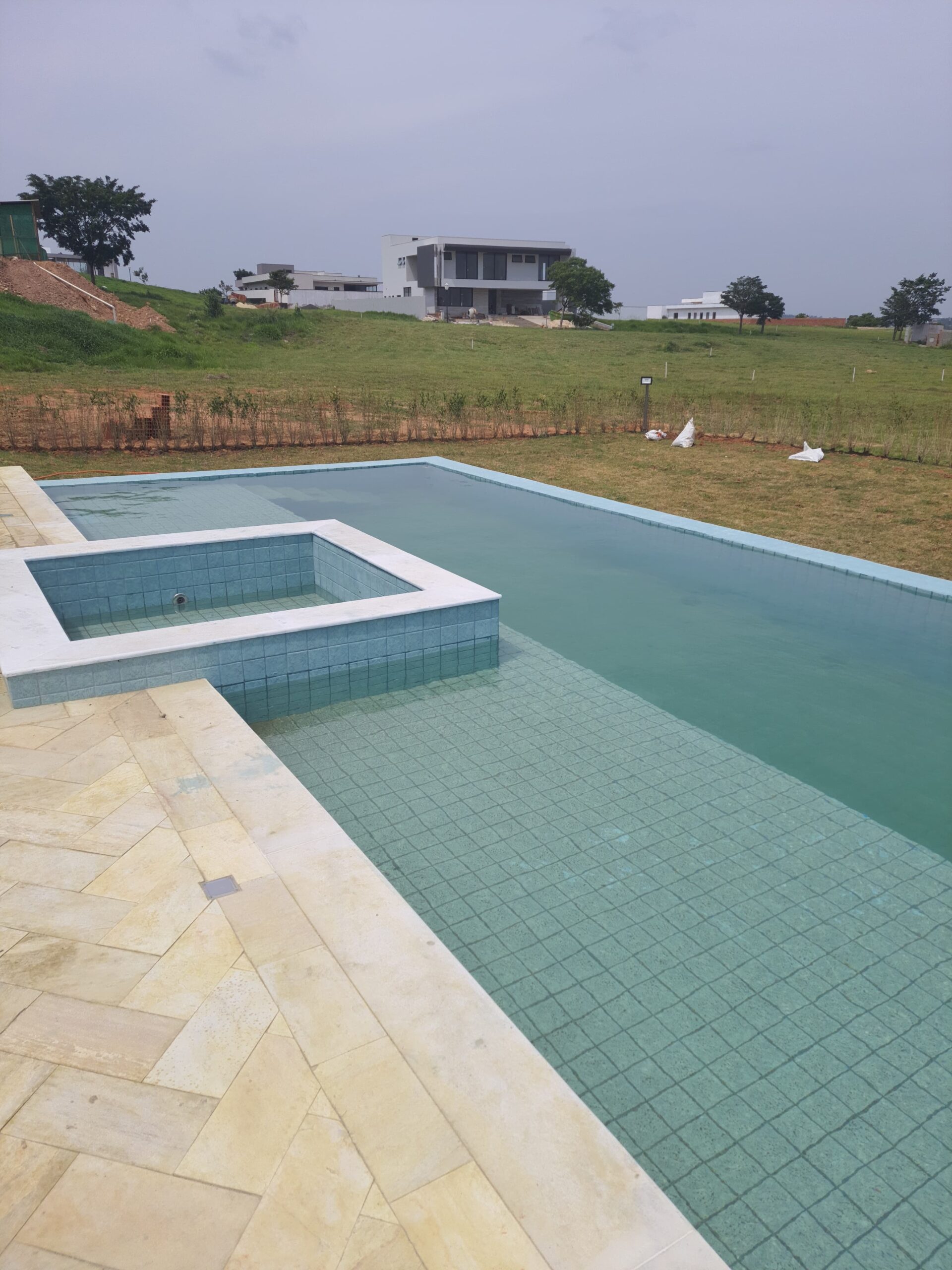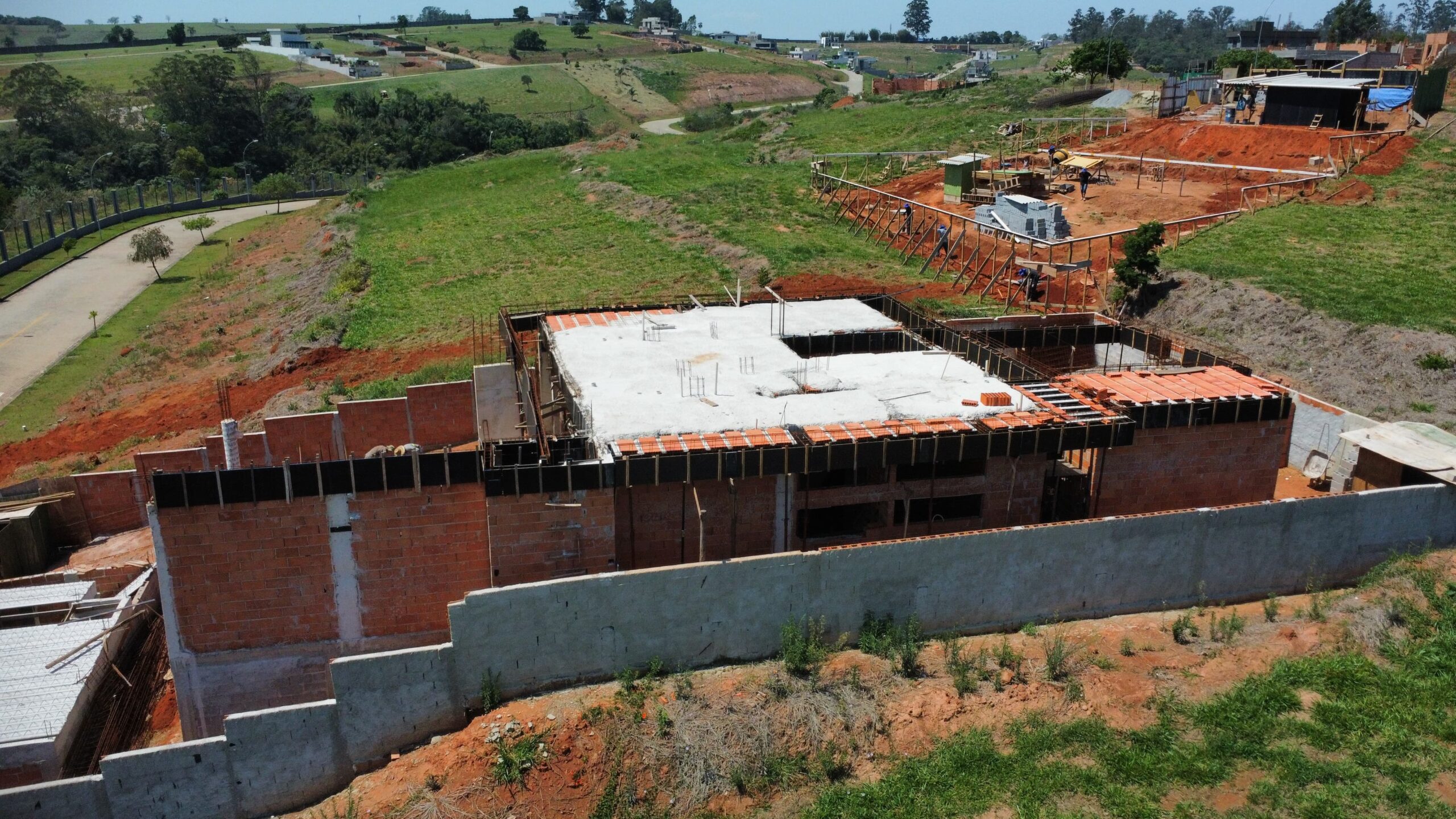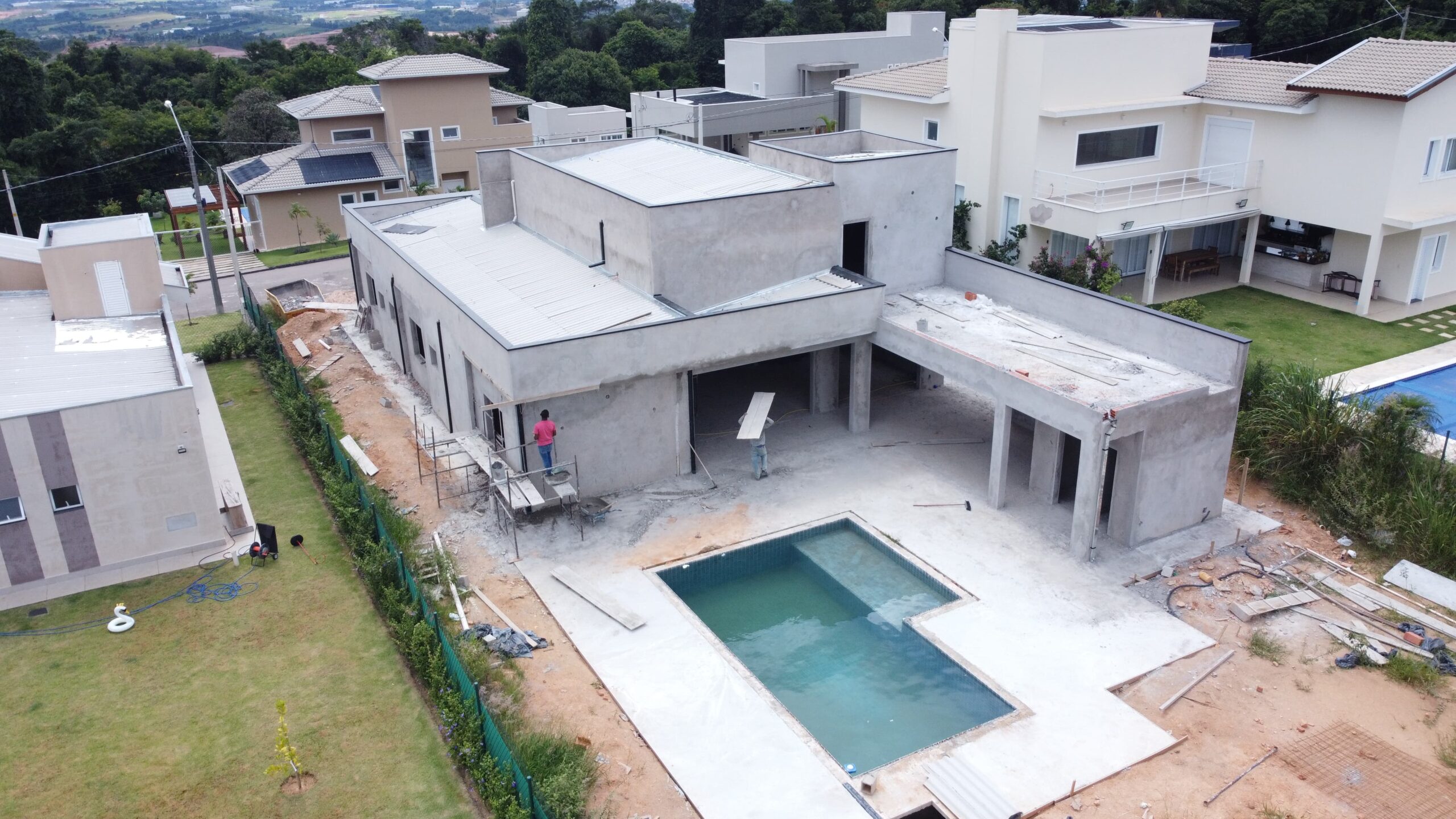 Residência contemporânea com mais de 400 m² em execução. Espaços amplos e piscina com borda infinita em destaque. Projeto com linhas modernas e foco em acabamento premium.