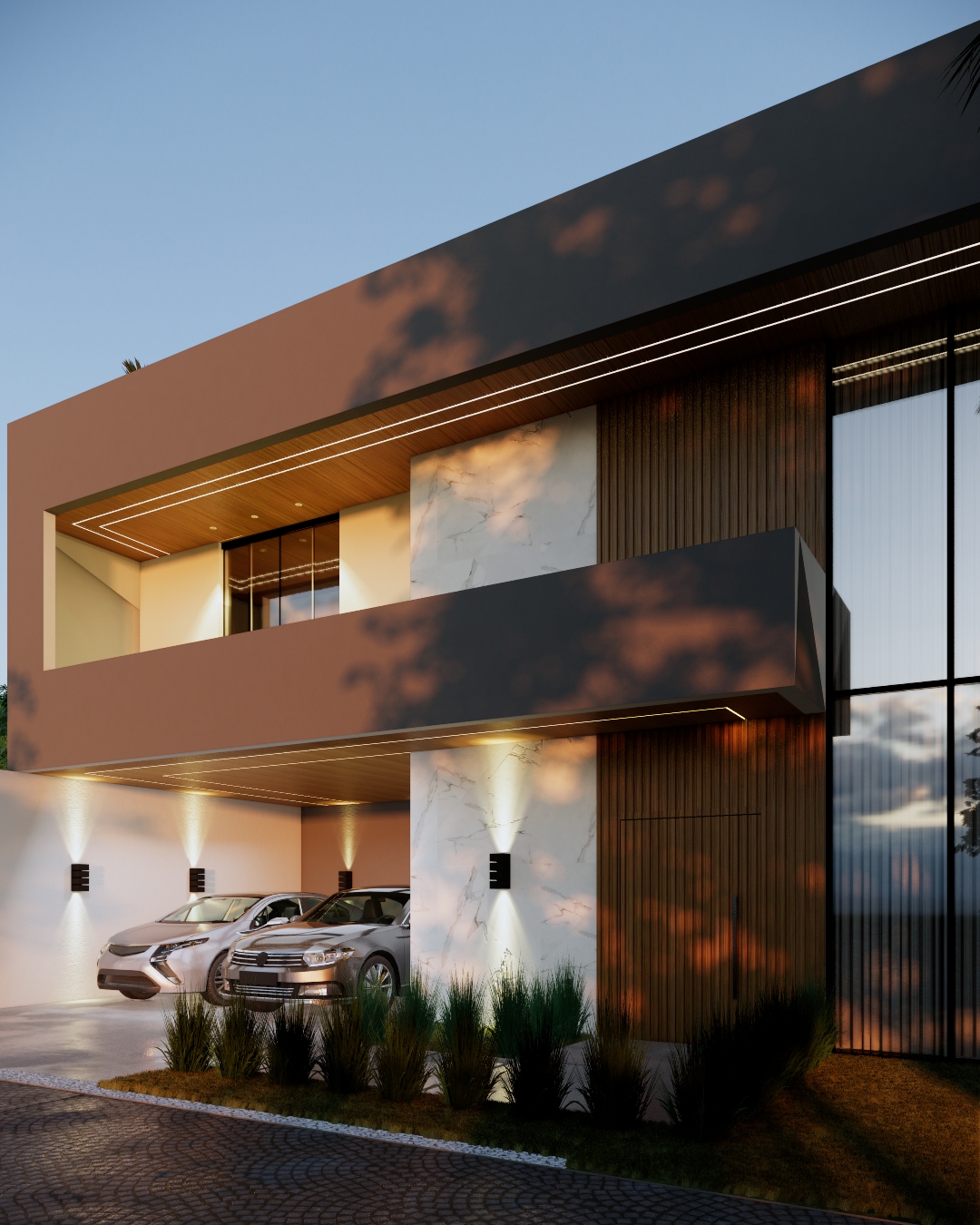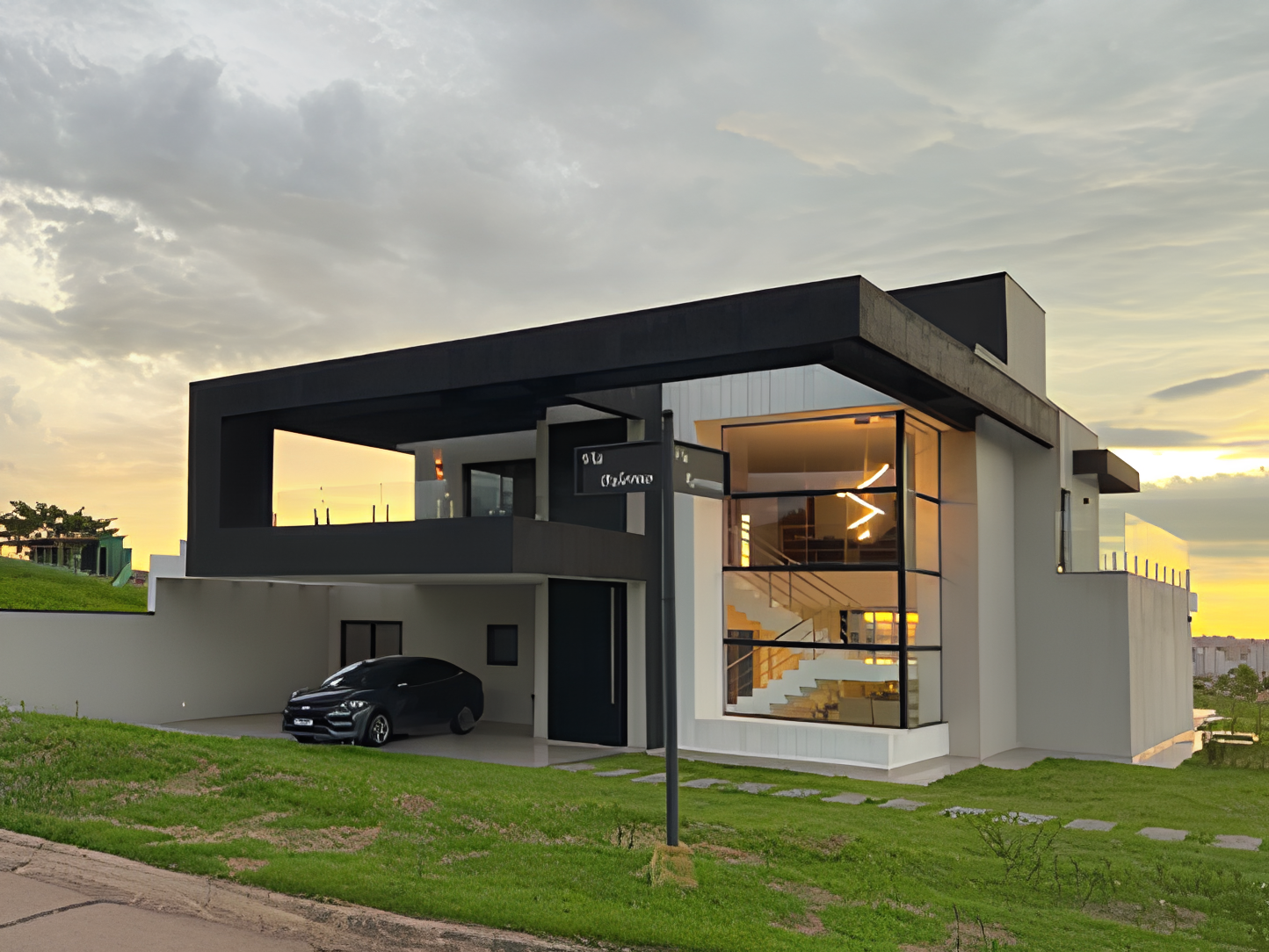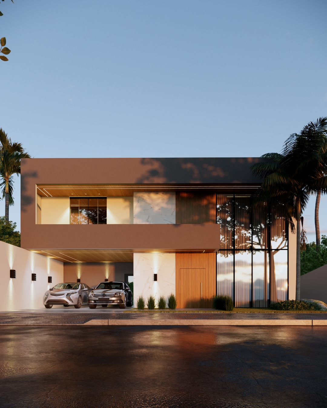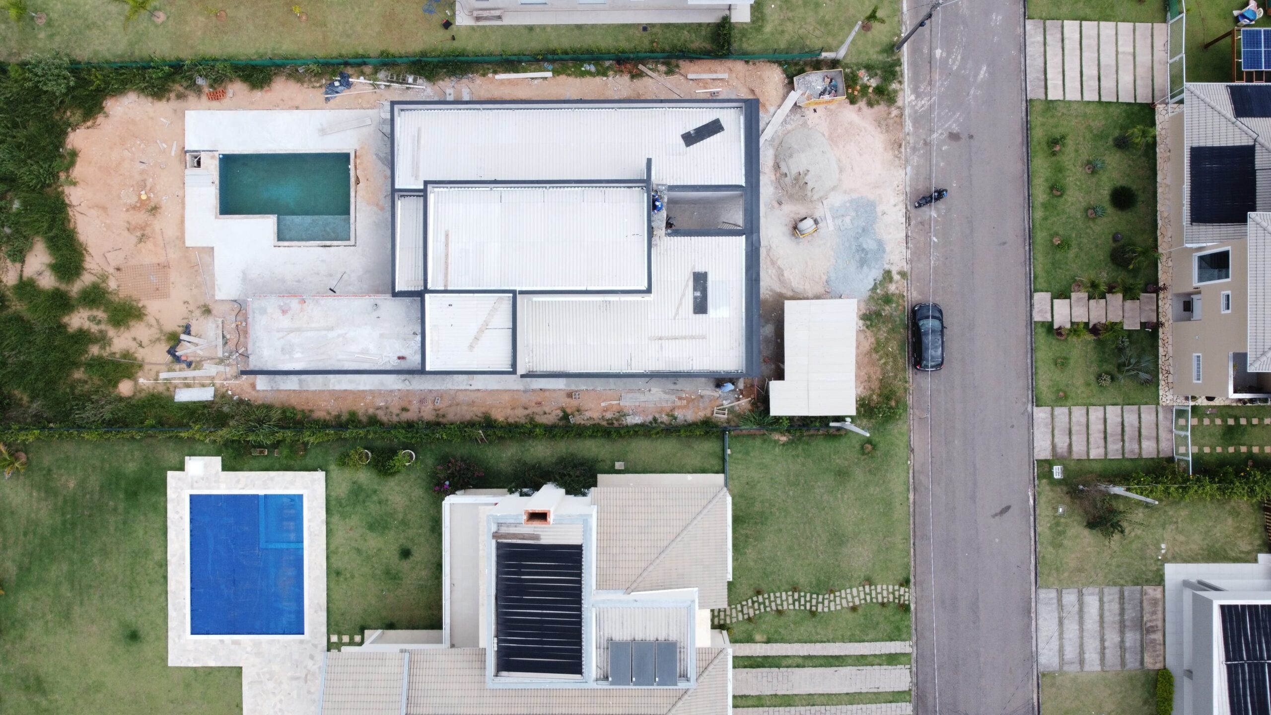 Residência contemporânea com mais de 400 m² em execução. Espaços amplos e piscina com borda infinita em destaque. Projeto com linhas modernas e foco em acabamento premium.