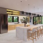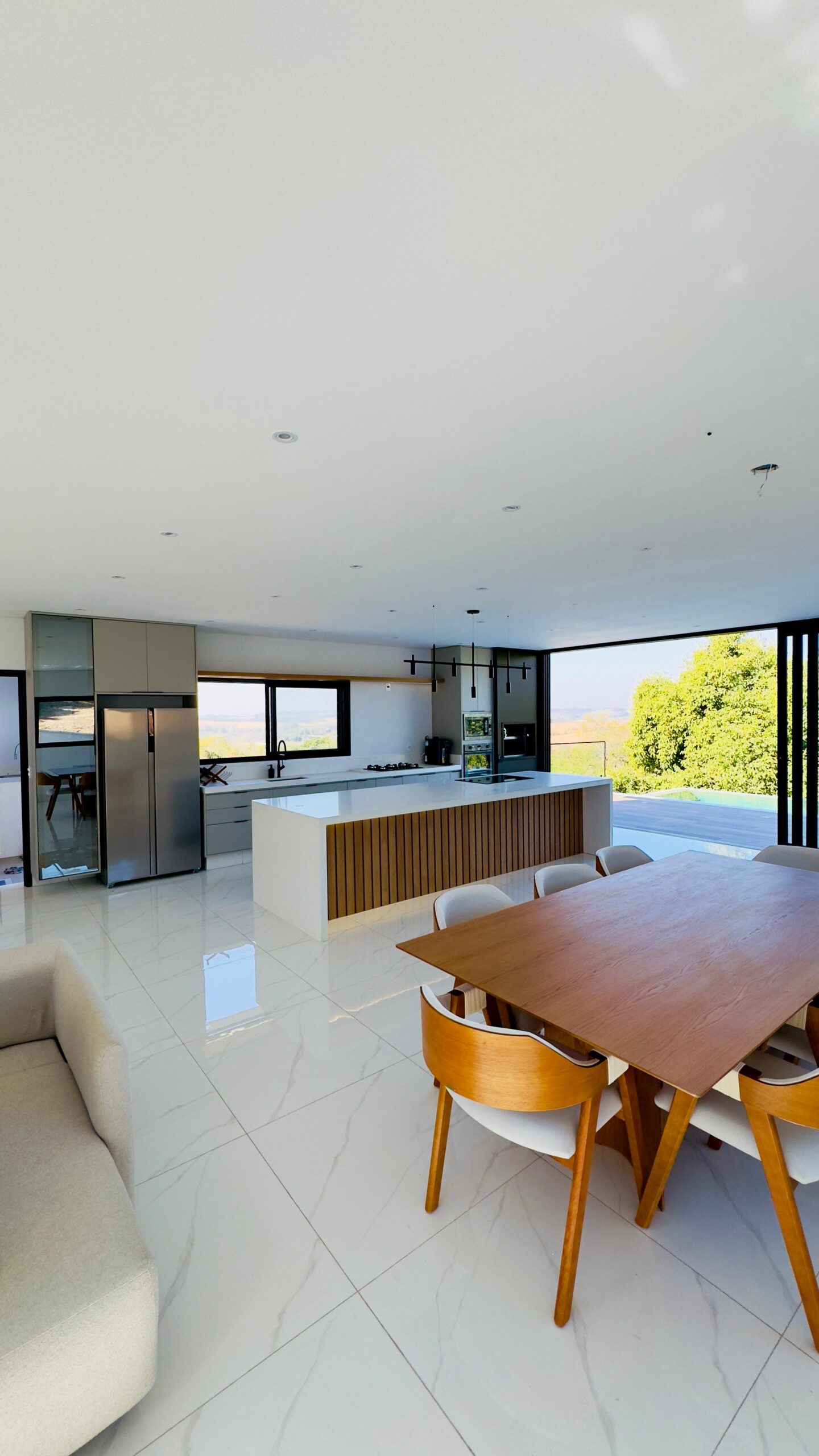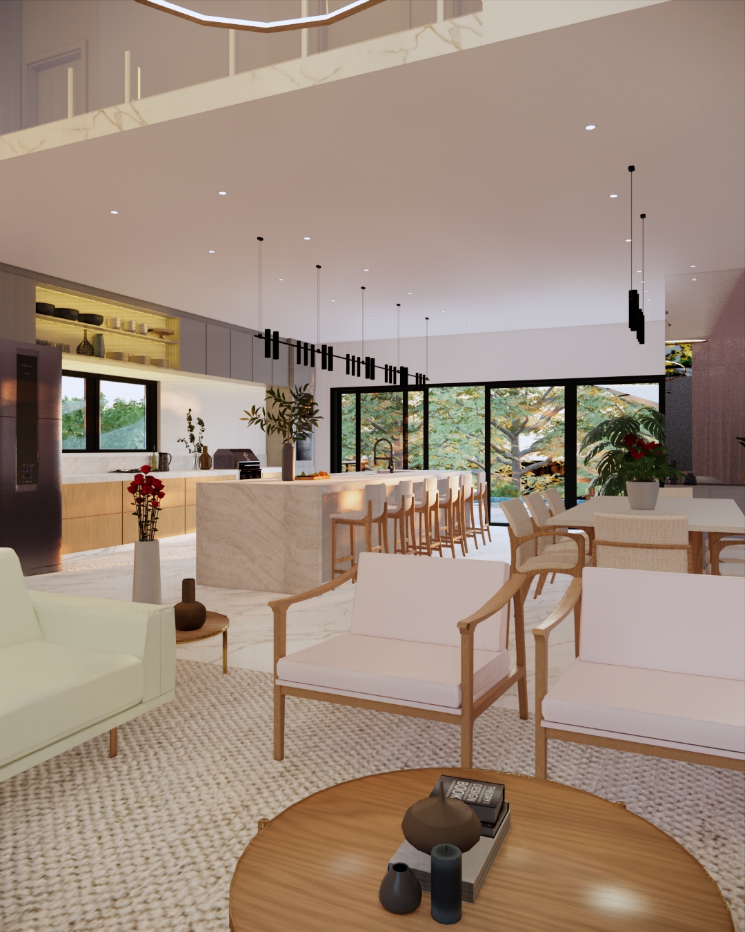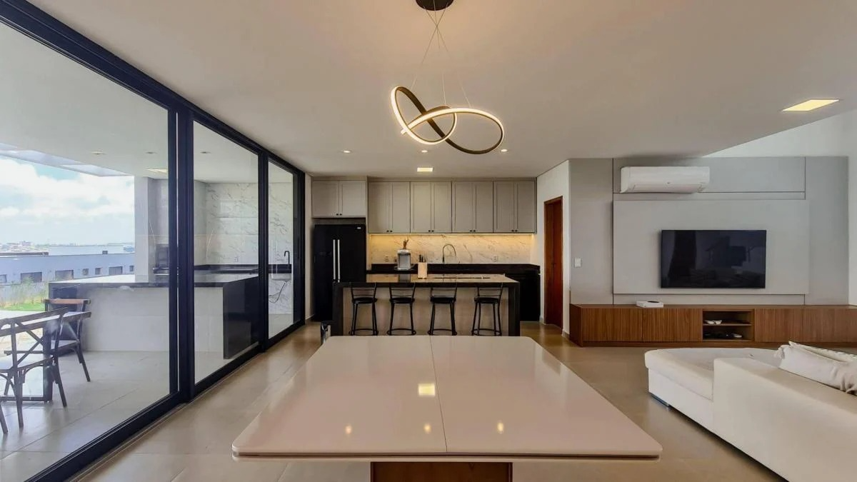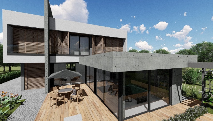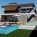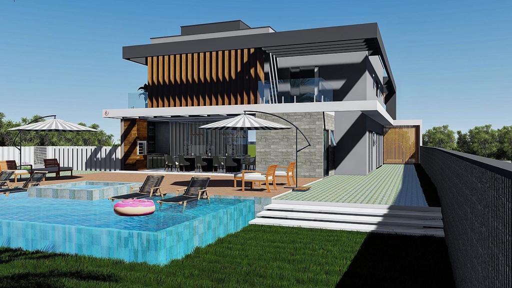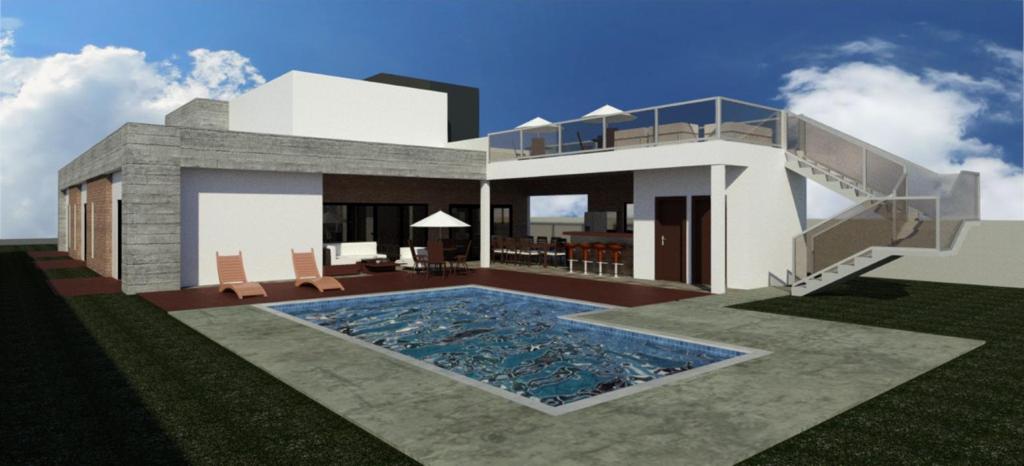 Residência ampla com 7 quartos e área de lazer integrada. Piscina central e ambientes pensados para conforto e convivência. Projeto que combina espaço, estilo e alto padrão.