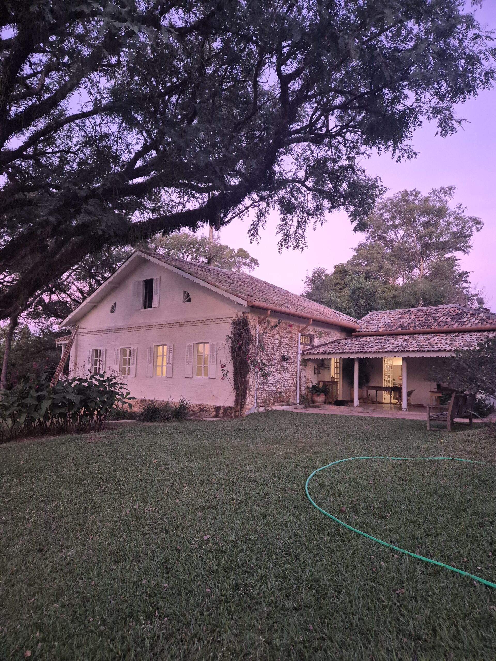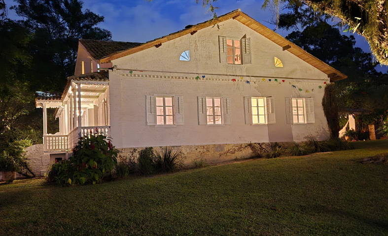 Restauro de um sítio de 100 anos em área de 220 mil m². Preservação da identidade original com renovação completa. Cinco suítes e espaços revitalizados para novos momentos.